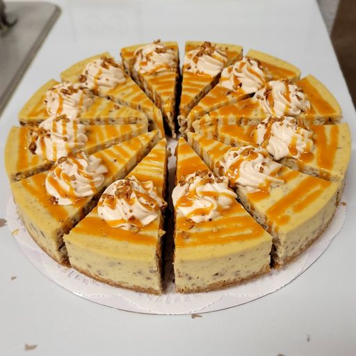 Holiday Inspired The Perfect Cheesecake$65 White Chocolate Raspberry Swirl$70 Double Layer Pumpkin$70 Chocolate Pumpkin with Bourbon Whipped Cream*contains alcohol$70 Apple Crisp$75 Cranberry Orange$70 #PSL Pumpkin Spice Latte$70 White Chocolate Peppermint$70 8″ Japanese Cheesecake$65 Cinnamon Roll$70 Browned Butter Pecan$75 Confetti Birthday$75 Sweet Potato w/ Praline$75 Eggnog$75